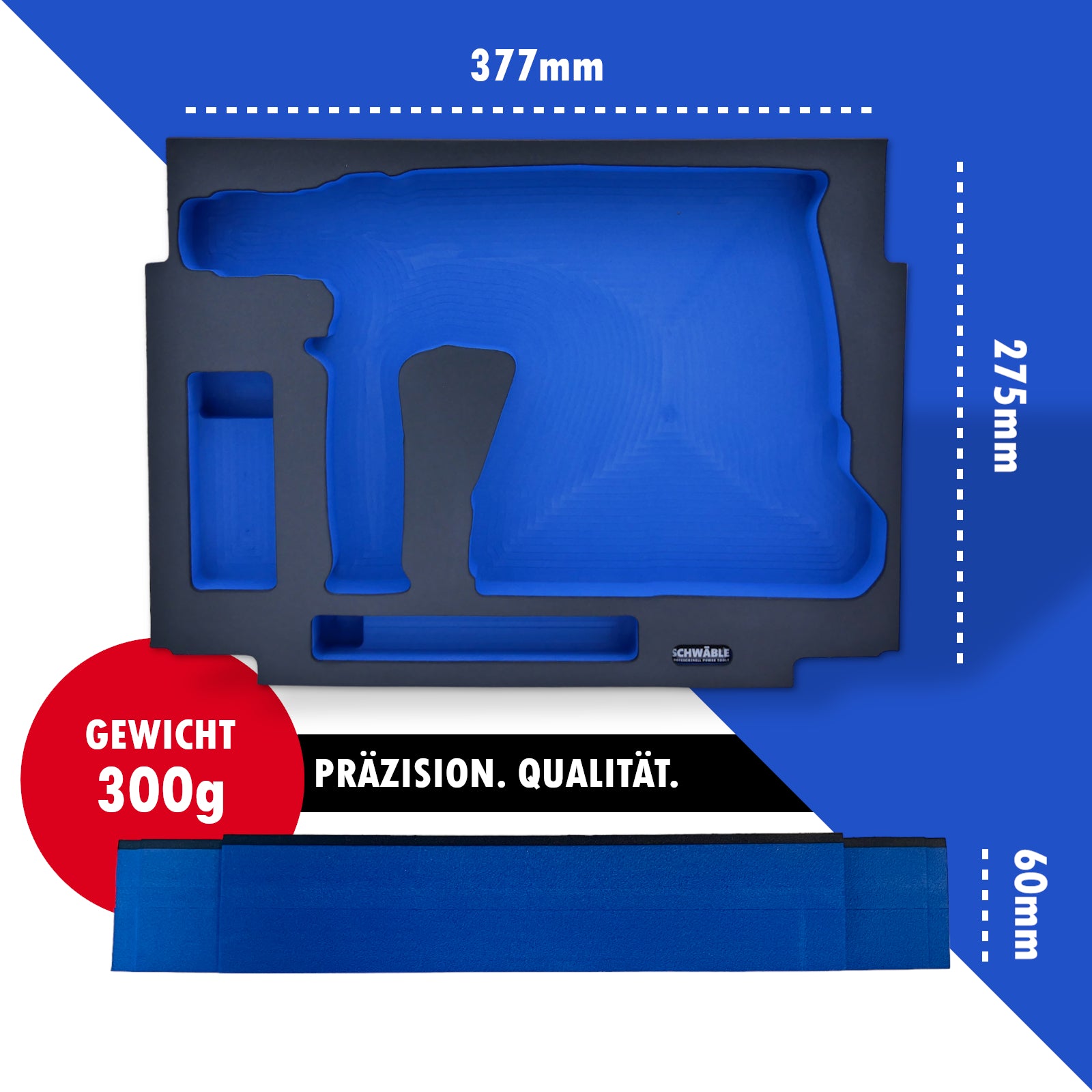 Die Schwäble Werkzeuge Schaumeinlagen bieten die ideale Lösung für die sichere und organisierte Aufbewahrung Ihrer Werkzeuge. Mit ihrer hohen Qualität und Funktionalität unterstützen sie Ihre Arbeit und tragen dazu bei, Ihre Werkzeuge optimal zu schützen und stets griffbereit zu halten. Die Schaumeinlagen sind Öl- Feuchtigkeitsresitent und wesentlich Dichter als je zuvor. Unsere eigene Rezeptur sorgt dafür, dass die Einlagen hoch verdichtet hergestellt werden, sodass sich dies im Gewicht von ca. 300g wiederspiegelt.