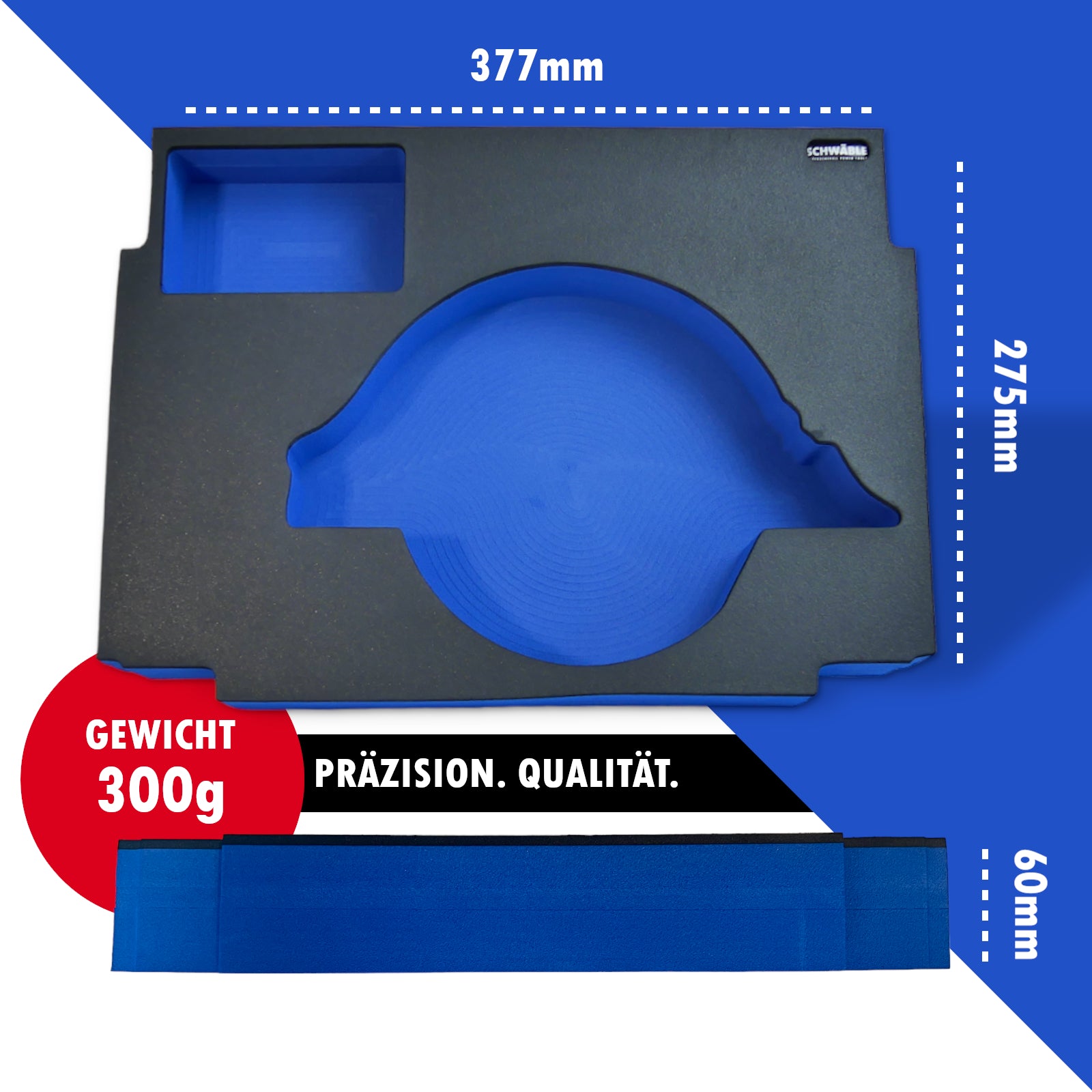 Die Schwäble Werkzeuge Schaumeinlagen bieten die ideale Lösung für die sichere und organisierte Aufbewahrung Ihrer Werkzeuge. Mit ihrer hohen Qualität und Funktionalität unterstützen sie Ihre Arbeit und tragen dazu bei, Ihre Werkzeuge optimal zu schützen und stets griffbereit zu halten. Die Schaumeinlagen sind Öl- Feuchtigkeitsresitent und wesentlich Dichter als je zuvor. Unsere eigene Rezeptur sorgt dafür, dass die Einlagen hoch verdichtet hergestellt werden, sodass sich dies im Gewicht von ca. 300g wiederspiegelt.