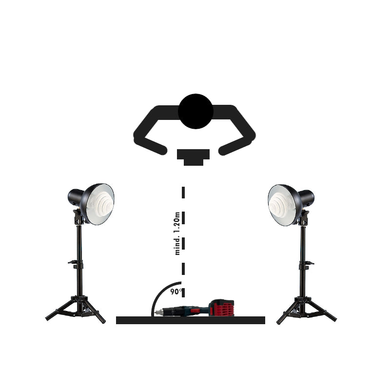 Am wichtigsten; kein Schatten um den Gegenstand. Perfekte Beleuchtung um den gesamten Gegenstand. Am allerbesten du legst jeden Gegenstand auf die Oberfläche eines LED-Panels. Dann würdest du keine weitere Beleuchtung um den Gegenstand benötigen. Halte dabei einen so großen Abstand wie möglich. Mind. 1.20m Umso größer der Abstand desto besser. Dann zoomst du den Gegenstand ins Bild. So bekommst du die Besten Ergebnisse. Wichtig, dass du die Kamera von oben exakt im 90° Winkel hälst. Kerzengerade, als wäre eine Wasserwaage an deiner Kamera. Alternativ buchst du im Konfigurator den Scanservice hinzu und wir übernehmen das für dich.