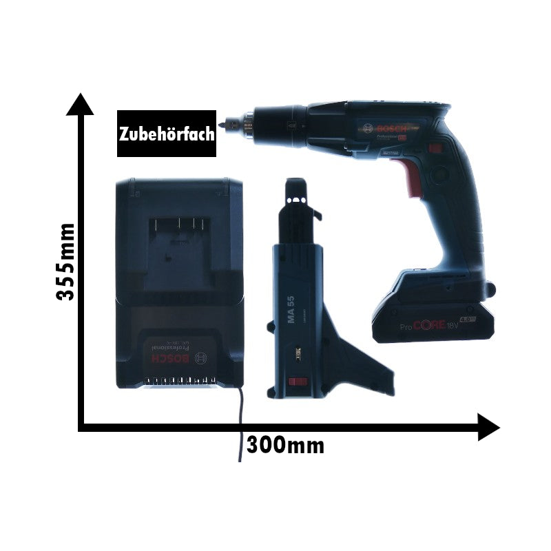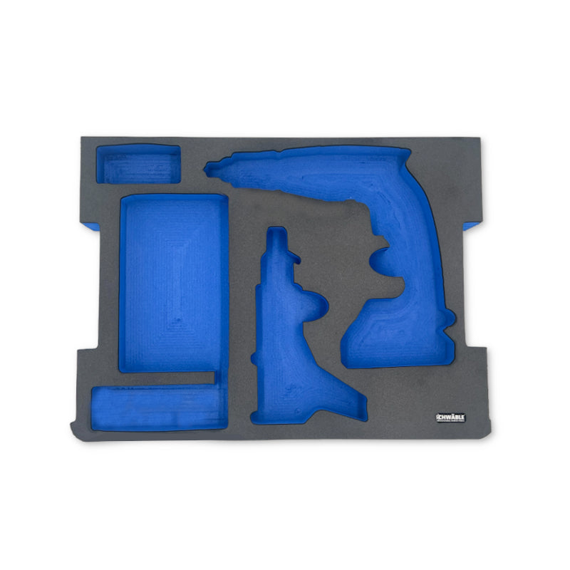 Dann brauchen wir nur noch die Maße je Gegenstand. Diese gibst du im Konfigurator ins Freitextfeld einfach ein. Beispielsweise: Bild 1 Bosch Schnellbauschrauber Länge: 225mm Breite: 224mm. Achte darauf tatsächlich die jeweils längste Seite zu nehmen. Im ersten Beispielbild gemessen von der Bitspitze, bis zum Ende dem oberen Teil der Maschine. Umso genauer die Angaben, desto passgenauer die Schaumeinlage.
