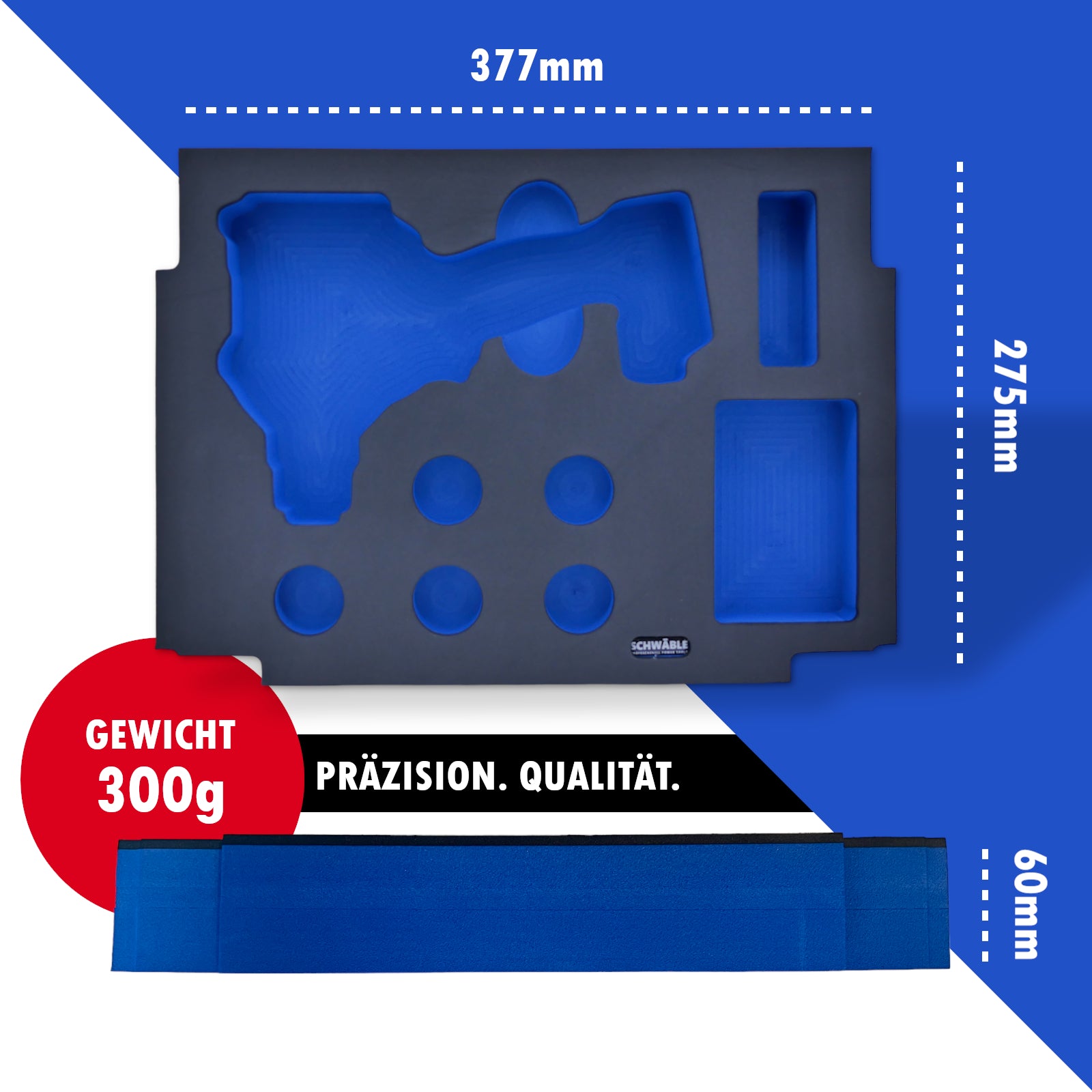 Die Schwäble Werkzeuge Schaumeinlagen bieten die ideale Lösung für die sichere und organisierte Aufbewahrung Ihrer Werkzeuge. Mit ihrer hohen Qualität und Funktionalität unterstützen sie Ihre Arbeit und tragen dazu bei, Ihre Werkzeuge optimal zu schützen und stets griffbereit zu halten. Die Schaumeinlagen sind Öl- Feuchtigkeitsresitent und wesentlich Dichter als je zuvor. Unsere eigene Rezeptur sorgt dafür, dass die Einlagen hoch verdichtet hergestellt werden, sodass sich dies im Gewicht von ca. 300g wiederspiegelt.