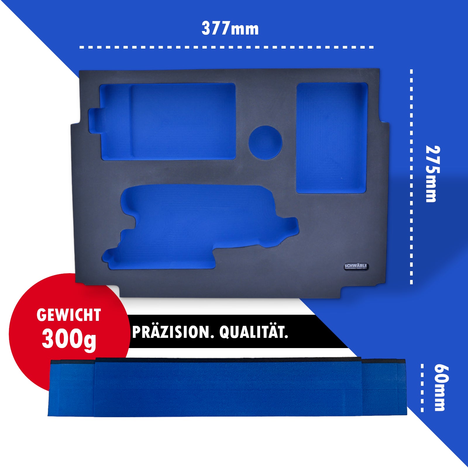 Die Schwäble Werkzeuge Schaumeinlagen bieten die ideale Lösung für die sichere und organisierte Aufbewahrung Ihrer Werkzeuge. Mit ihrer hohen Qualität und Funktionalität unterstützen sie Ihre Arbeit und tragen dazu bei, Ihre Werkzeuge optimal zu schützen und stets griffbereit zu halten. Die Schaumeinlagen sind Öl- Feuchtigkeitsresitent und wesentlich Dichter als je zuvor. Unsere eigene Rezeptur sorgt dafür, dass die Einlagen hoch verdichtet hergestellt werden, sodass sich dies im Gewicht von ca. 300g wiederspiegelt.